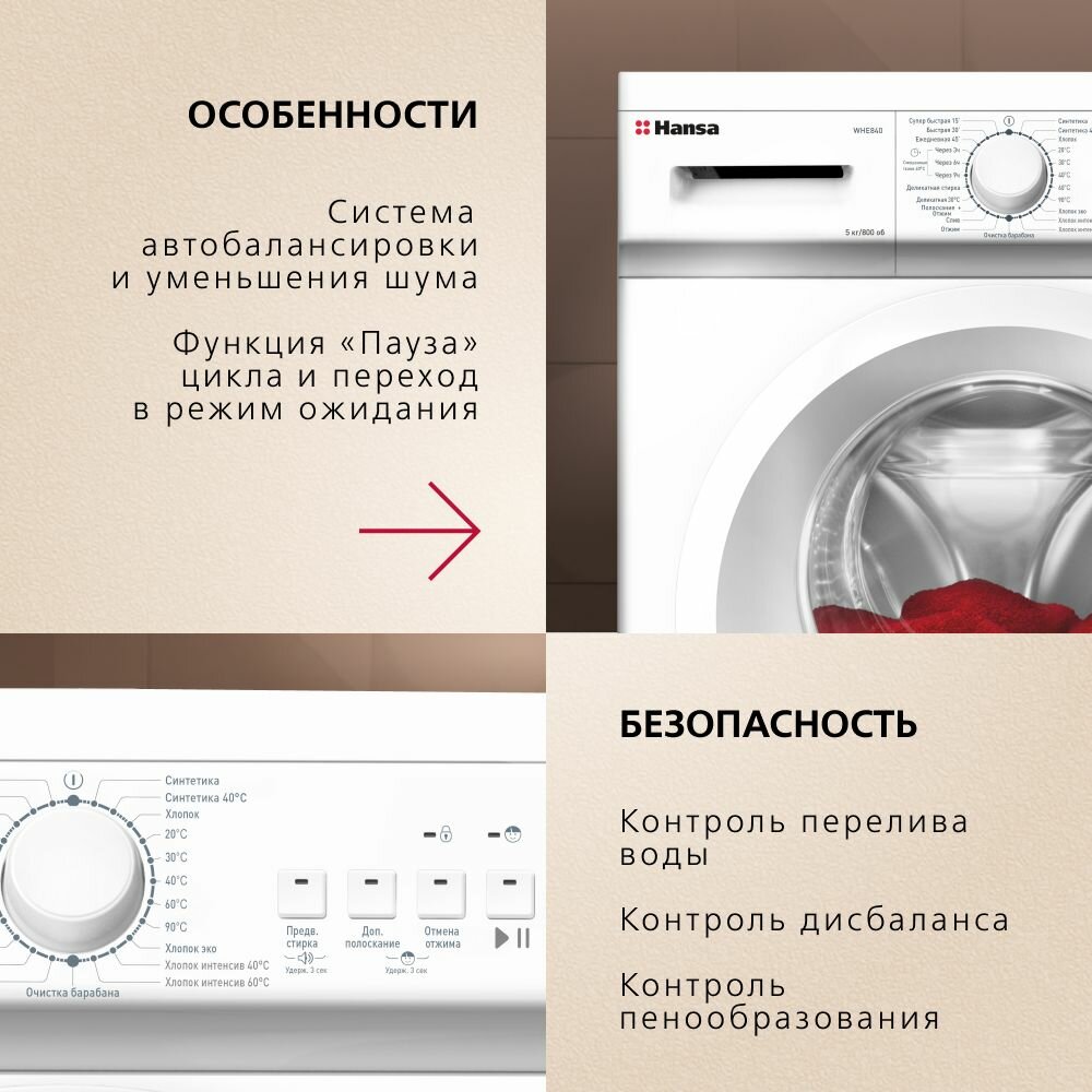| Программы | 15 шт / быстрая стирка / деликатная стирка / гигиена (детская одежда) / спортивная одежда / пуховые вещи |