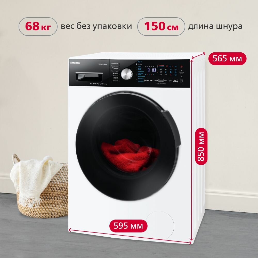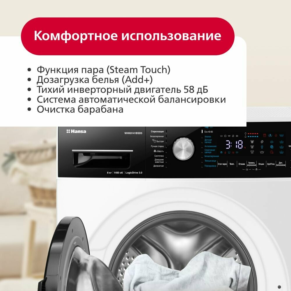 Стиральная машина Hansa WHK8141BSD5, с фронтальной загрузкой, с паром, 8кг, 1400об/мин, инверторная