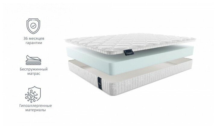 Лучшие цены. В основании модели положен блок инновационного материала Natural foam, по своим свойствам аналогичного натуральному латексу. Он отлично поддерживает корпус пользователя во время сна, быстро восстанавливается, вентилируется и не скапливает пыль внутри себя. Умеренная степень жесткости модели понравится тем, кто ведет достаточно активный образ жизни, спортсменам. Также такой матрас может быть использован для подростков, находящихся в стадии формирования правильной осанки. Магазины в вашем городе.
