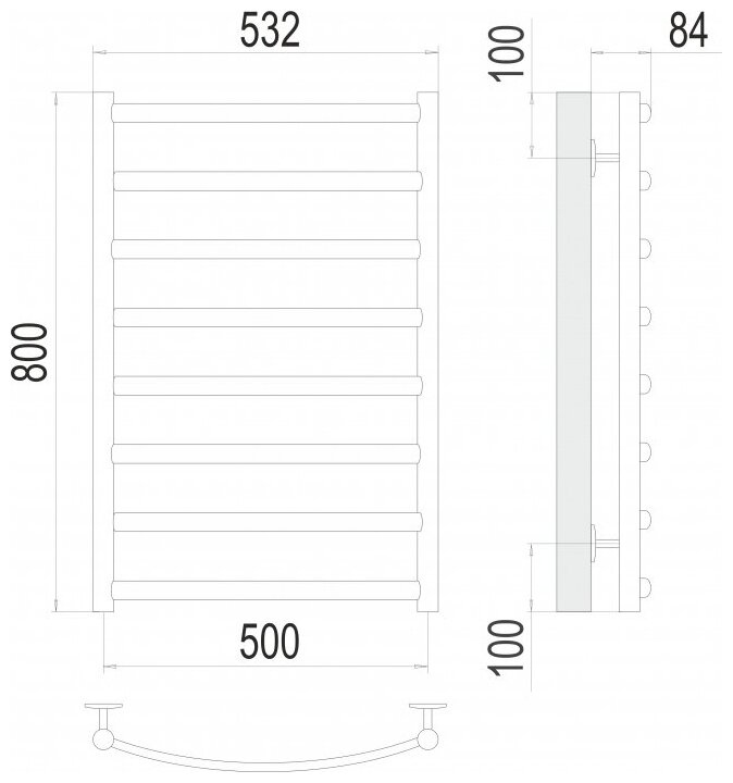 Полотенцесушитель водяной TERMINUS Атланта+ П8 500х800 без американок в комплекте