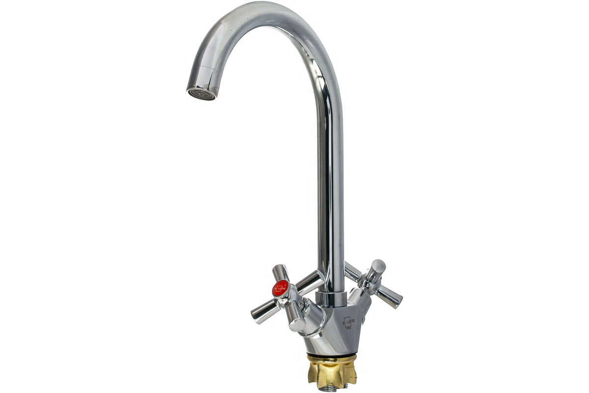 Смеситель д/кух, 2-ручк, керам к/б, пов изл, гайк, Solone (Китай), арт нов KOA4-C722