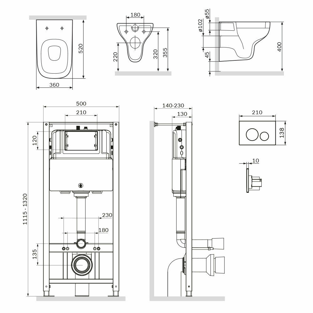 | Комплектация | унитаз, бачок, кнопка смыва, звукоизоляционная прокладка |