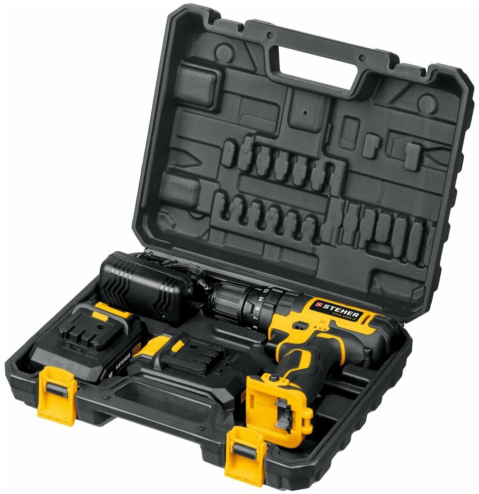 Дрель / шуруповерт Steher 20В, 2 АКБ (2Ач), в кейсе, ударная дрель-шуруповерт. CDS-200-2 CDS-200-2
