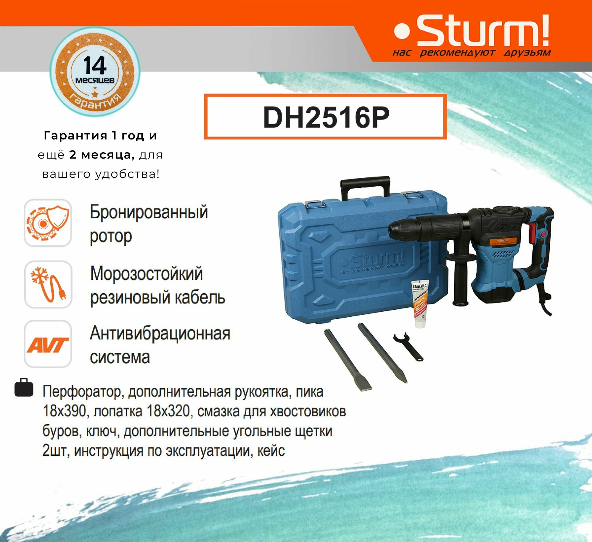 Отбойный молоток-бетонолом Sturm! DH2516P, 1650 Вт, 3600 уд/мин