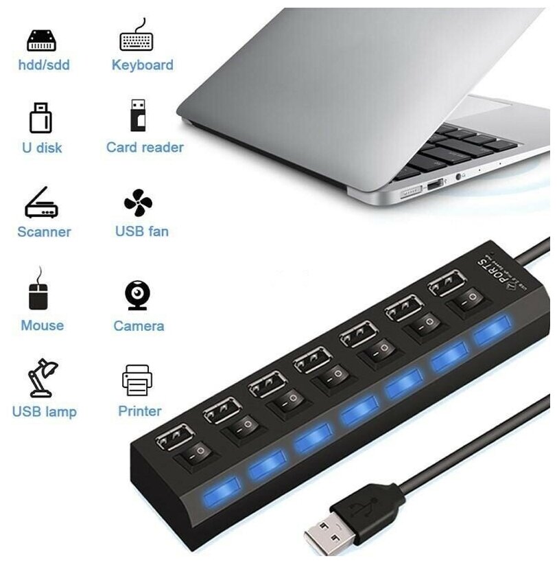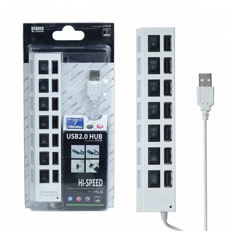 Картридеры и USB-хабы USB Hub разветвитель на 7 USB с выключателями (Белый)