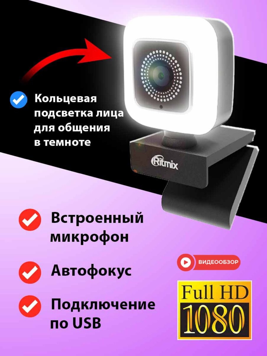 Веб-камера Ritmix RVC-220 Full HD 1080P, встроенный микрофон, подстветка 2 мил пикселей 1920 * 1080. подключение по USB 1 598 ₽ Подробнее