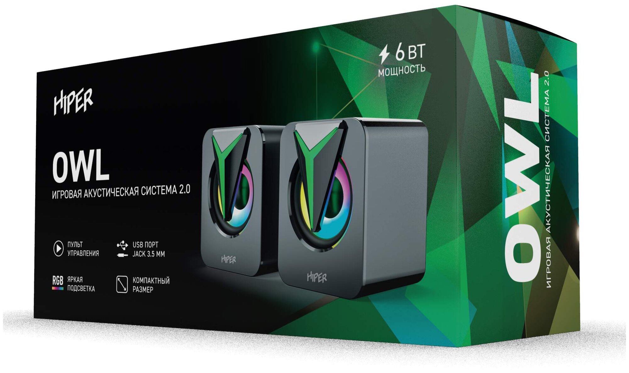 Лучшие цены. Hiper Owl — активная акустическая система, состоящая из двух двухполосных колонок. Максимальная мощность — 6 Вт. Устройство подключается к компьютеру или ноутбуку через аудиоразъем 3,5 мм и USB-порт и получает от него питание. Предусмотрена RGB-подсветка декоративных элементов. Размеры — 7,5 х 6,5 х 7 см, вес — 0,22 кг. Магазины в вашем городе.
