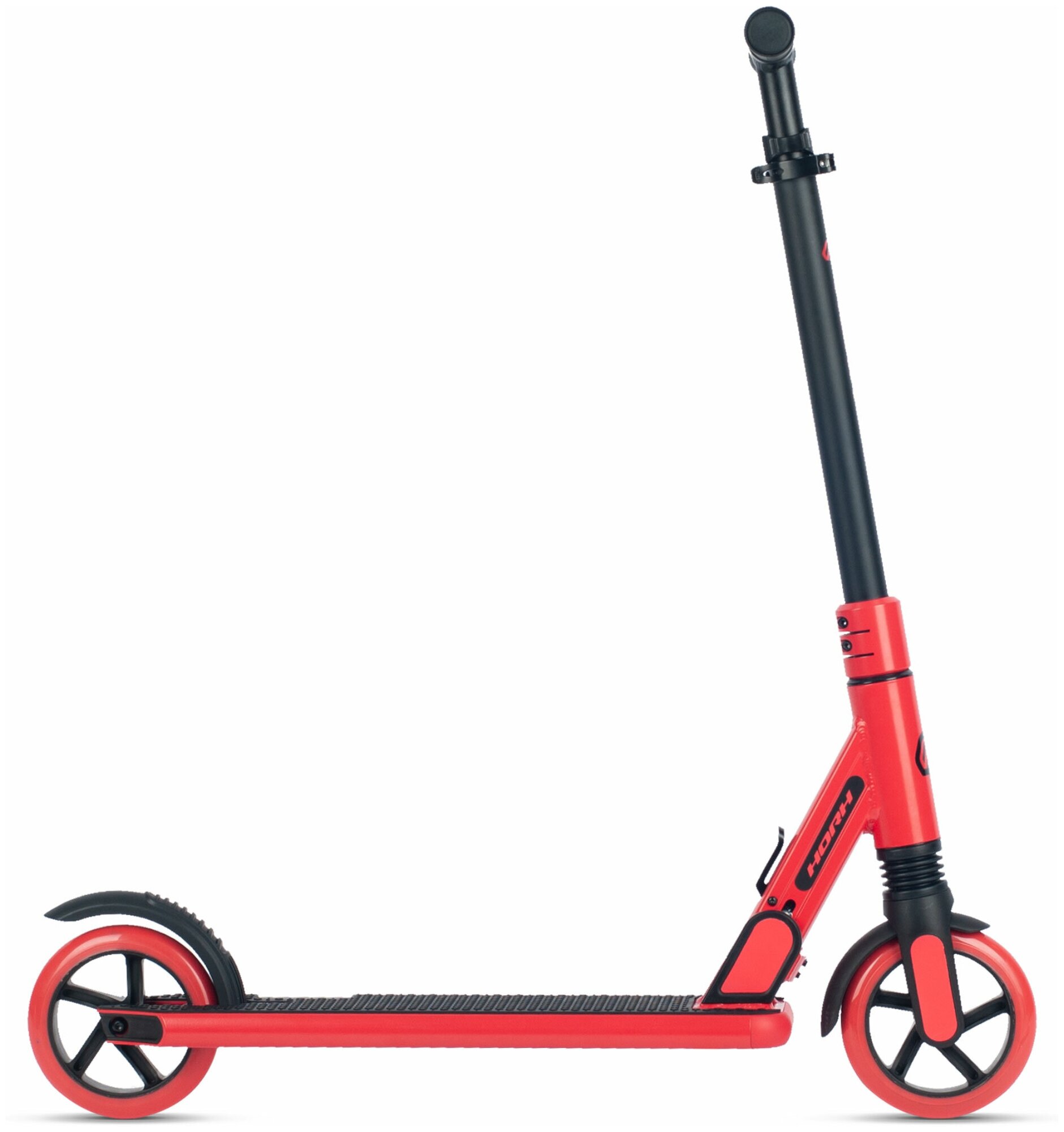 Самокат двухколесный HORH Vento 145 городской для детей от 6 до 8 лет, алюминиевая дека, алюминиевый руль, ножной тормоз, подшипники abec 9, красный цвет, на рост 115-125