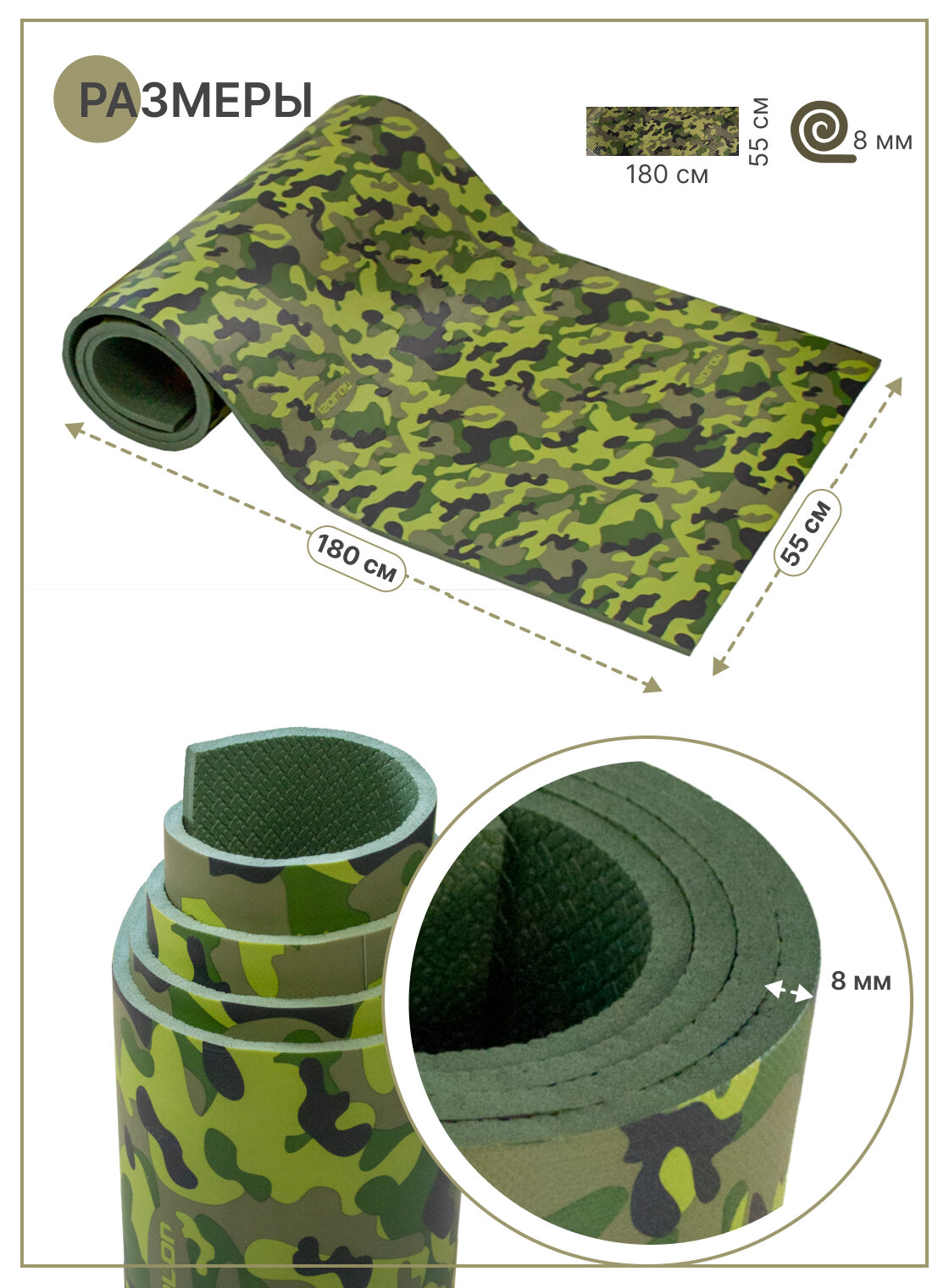 Коврик для туризма и отдыха Isolon Decor Камуфляж 8 мм, 180х55 см хаки 602 ₽ Подробнее