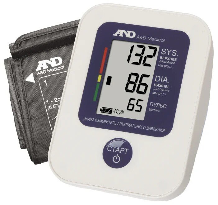 Автоматический тонометр AND UA-888 E (Эконом) со стандартной манжетой 22–32 см, без сетевого адаптера