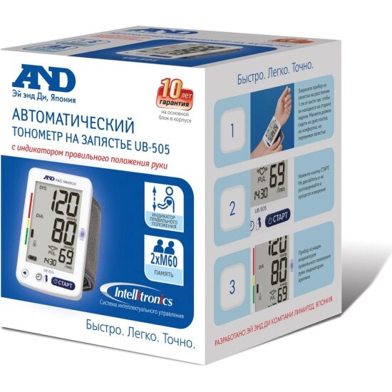 AND UB-505 Тонометр автоматический на запястье с крупным дисплеем