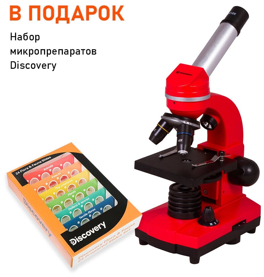 Микроскоп Bresser Junior Biolux SEL 40..1600x, красный + набор микропрепаратов