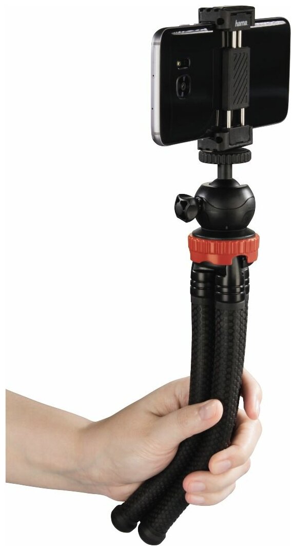 Лучшие цены. Штатив Hama FlexPro универсальный красный/черный алюминиевый сплав (348гр.) Параметры: Захватывающие фотографии с помощью смартфона с захватывающих ракурсов и в необычных местах: с этим подвижным штативом вы можете гибко и новаторски выбирать объекты. Благодаря изгибу на 360 ° вы можете петлять, оборачивать и крутить гибкий штатив практически вокруг любого объекта. Магазины в вашем городе.