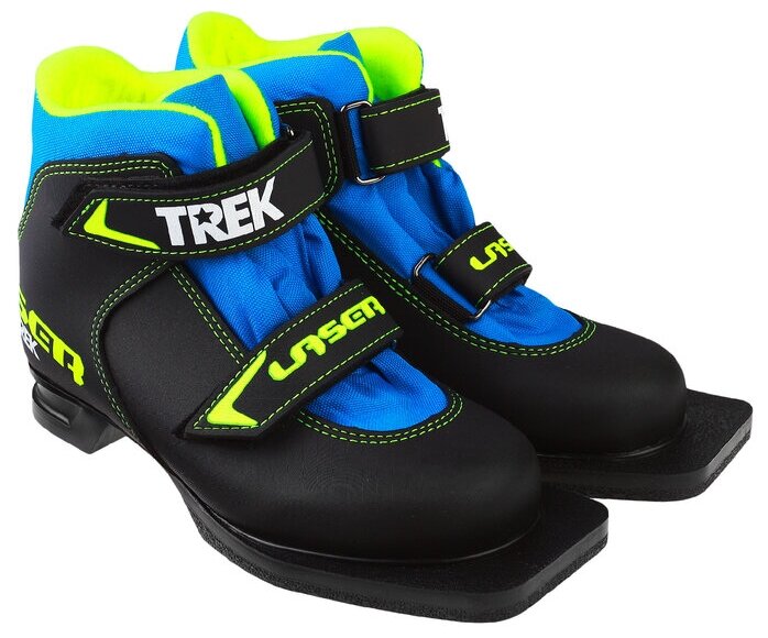 Ботинки лыжные TREK Laser, NN75, искусственная кожа, искусственная кожа, цвет чёрный/синий, лого лайм-неон/белый, размер 32