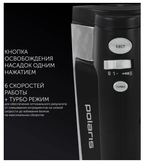 Миксер эл. POLARIS PHM 5015 Crystal /нерж., 500Вт, 6 скор./