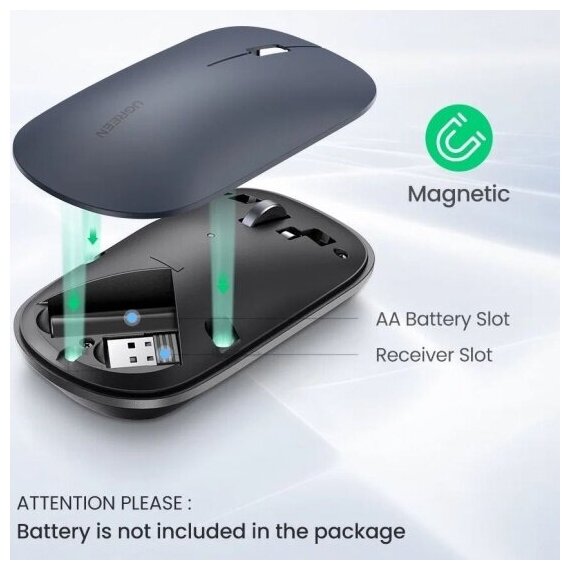 Беспроводная компьютерная мышь UGREEN MU001 (90372) Portable Wireless Mouse. Цвет: серо-черный