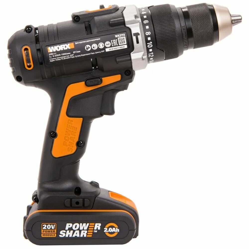 Лучшие цены. WORX WX372 – многофункциональная ударная дрель-шуруповерт, которая отличного подойдет для частного и профессионального использования. Обладая аккумуляторной конструкцией, компактностью и малым весом, дрель хорошо подойдет для длительного использования и выездных работ. Меняйте оснастку одной рукой Дрель оснащена 13-ти миллиметровым быстрозажимным патроном, с функцией фиксации оснастки одной рукой. Для того, чтобы сменить сверло на биту, не нужно использовать дополнительного инструмента. Магазины в вашем городе.