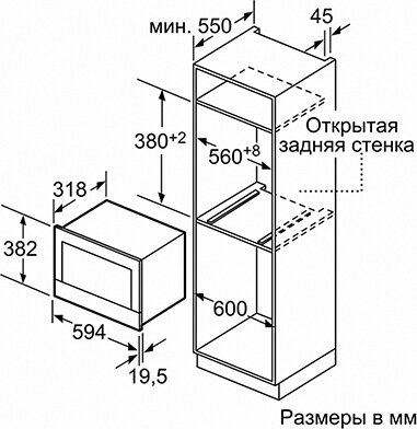 | Размеры для встраивания (ВхШхГ) | 362x560x300 мм |