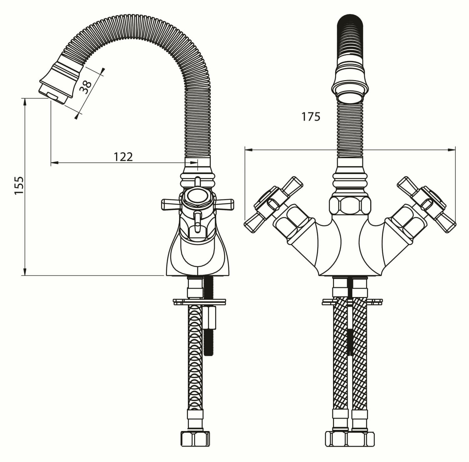 Смеситель для раковины (умывальника) двухвентильный с поворотным и гибким изливом ELGHANSA PRAKTIC CHROME 19B2660, хром