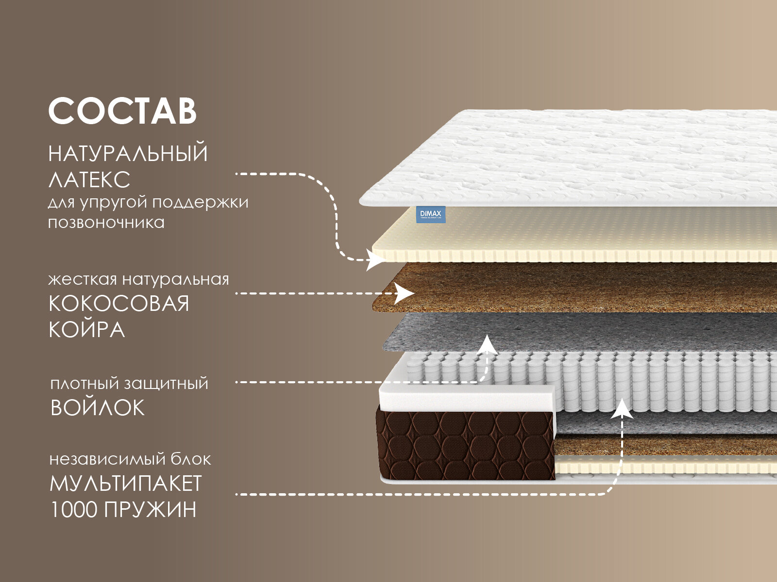 Матрас Dimax Мега Медиум 200х195 см 53 925 ₽ Подробнее