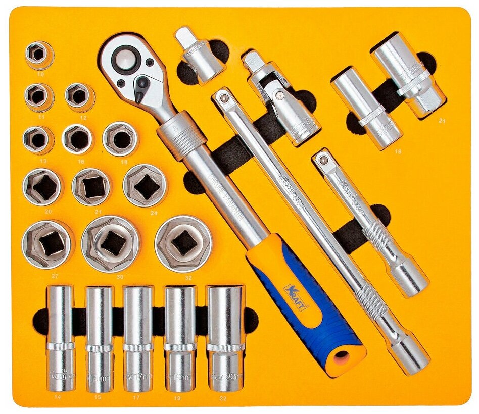 Набор инструментов KRAFT KT700616 Набор инструментов 1/2Dr 24 предмета (ложемент с сумккой в блистере) 1шт