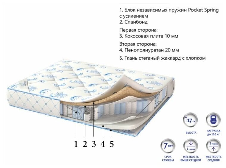 | Наполнитель | пенополиуретан, кокосовая койра, спанбонд |