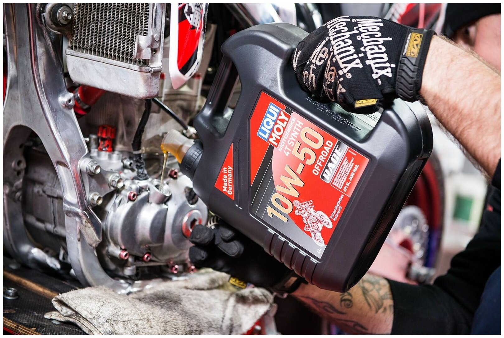 Лучшие цены. Масло моторное для 4-тактных мотоциклов 10W-50 Motorbike 4T Synth Offroad Race 4л LIQUI MOLY 3052 Для эксплуатации гоночной мототехники на бездорожье. Универсального применения для мотокросса, эндуро, квадроциклов, SxS, снегоходов. Для высоконагруженных мотоциклетных двигателей с "мокрым" и "сухим" сцеплением, воздушного и водяного охлаждения. Особенности: Современная формула, сочетающая высокостабильную ПАО-базовую основу с современными присадками. Магазины в вашем городе.