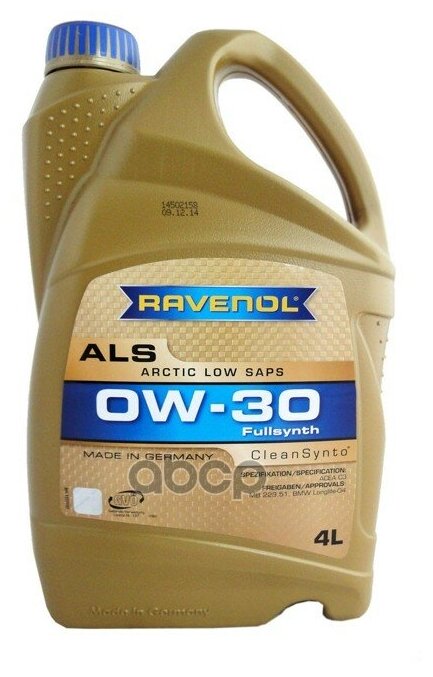 Моторное масло RAVENOL ALS 0W-30, 5 литров