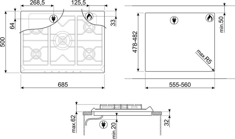 | Размеры для встраивания (ШхГ) | 839x478 мм |