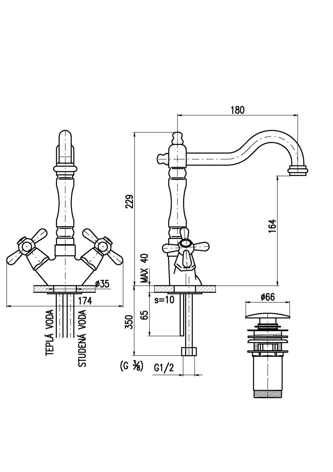 MK321.5/8B MORAVA RETRO - смеситель для умывальника, CLICK-CLACK, высота 224 мм., белый глянцевый RAV Slezak