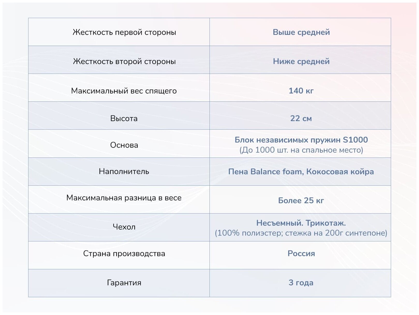 | Количество пружин | 512 шт/м2 |