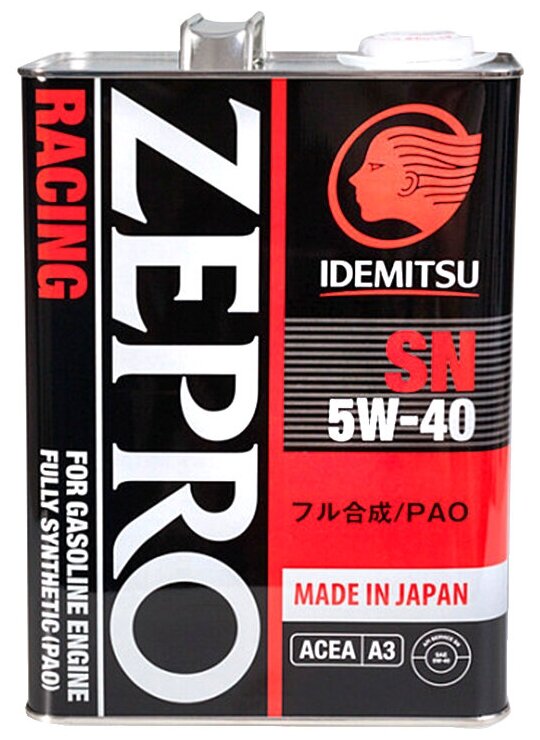 Лучшие цены. Масло моторное IDEMITSU ZEPRO RACING SN 5W-40 SN Fully Synthetic можно купить в нашем интернет-магазине по оптимальной цене! Полностью синтетическое масло высокого качества на основе полиальфаолефинов. Данный продукт специально разработан для мощных форсированных бензиновых двигателей. Идеально подходит для всех автомобилей европейского и японского производства как с турбонаддувом, так и без него. Магазины в вашем городе.