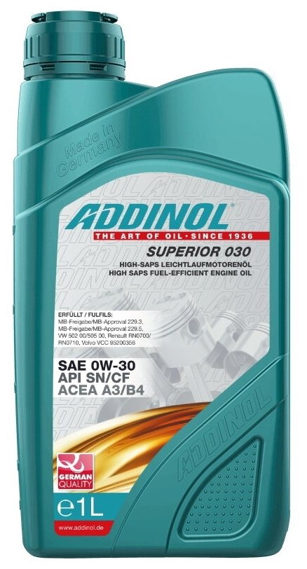 Addinol Superior 030 1l Моторное Масло ADDINOL арт. 72097807 4 020 ₽ Подробнее