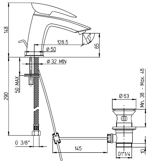 | Высота смесителя | 148 мм |