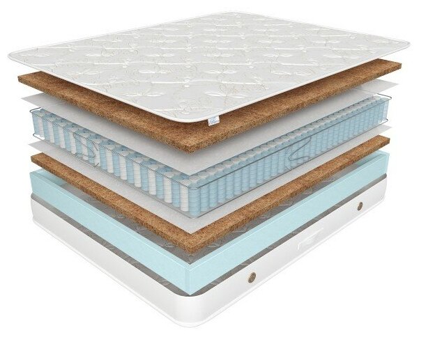 Лучшие цены. Пружинная основа матраса De Luxe Elite Coco состоит из 500 независимых пружин на спальное место. Пружины свиты из прочной проволоки, работают независимо друг от друга, не скрипят и не создают волновой эффект на поверхности. В качестве наполнения использован мононаполнитель - латексированный кокос. Слои кокоса выстелены с обеих сторон от пружиной основы. Кокос усиливает действие пружин, выравнивает поверхность и добавляет ей ортопедических свойств. Магазины в вашем городе.