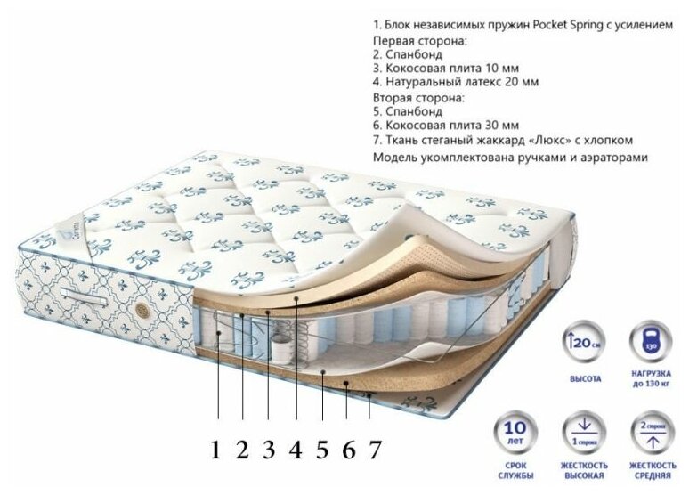 Лучшие цены. Ортопедические матрасы из латекса с применением кокосовой койры De luxe evro latex от компании Corretto - прекрасный выбор для ценителей повышенного удобства сна и отдыха. Его конструкция выполнена следующим образом: одна поверхность обладает высоким уровнем жёсткости, вторая – средним. Соответственно, у владельца появляется возможность сделать выбор наиболее оптимального варианта. Магазины в вашем городе.