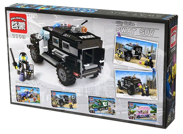 Лучшие цены. Из деталей конструктора можно собрать патрульный автомобиль. Двери машины открываются, колеса вращаются. Длина автомобиля в собранном виде 15,5 см. В комплекте 2 фигурки персонажей с оружием. Детали конструктора совместимы с другими наборами и производителями (Lego, Sluban, Ausini, Bela и Brick). Магазины в вашем городе.