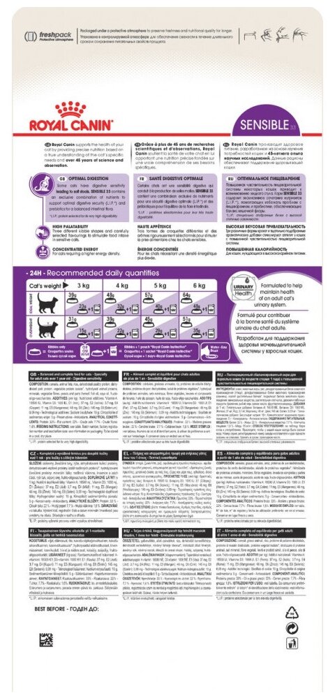 Royal Canin Sеnsible питание для кошек с чуствительным пищеварением и кошек привередливых в еде в возрасте от 1-го года до 10-ти лет 2 кг