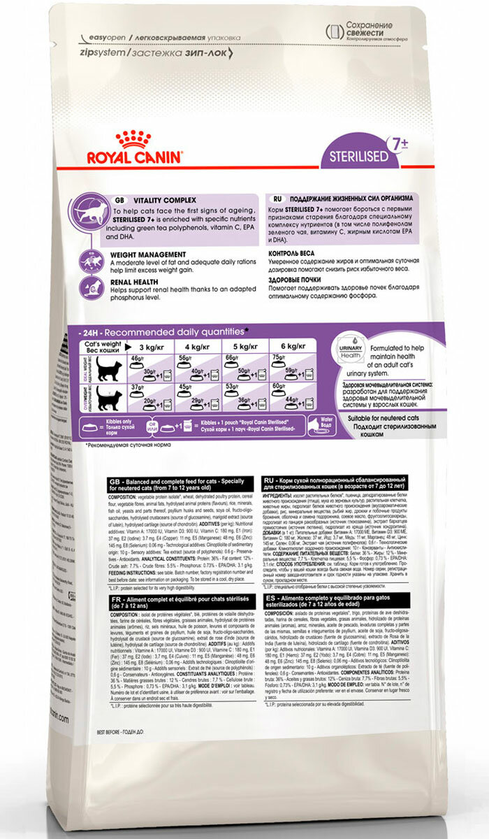 Сухой корм Royal Canin Sterilised 7+ для стерилизованных взрослых кошек от 7 до 12 лет, 0.4 кг