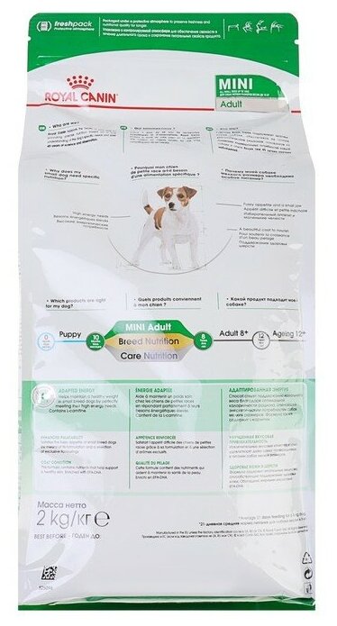Лучшие цены. ROYAL CANIN Mini Adult предназначен для собак мелких пород (весом до 10 кг) старше 10 месяцев и разработан с учетом потребностей взрослой собаки в питательных веществах. Собаки мелких пород отличаются высокой потребностью в энергии, поэтому продукт ROYAL CANIN Mini Adult содержит достаточное количество жиров и L-карнитин, которые помогают животному поддерживать высокий уровень энергии, и при этом сохранять оптимальный вес. Магазины в вашем городе.