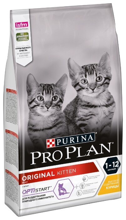 Лучшие цены. Полнорационный сбалансированный сухой корм супер-премиум класса для котят Purina® Pro Plan® Original Kitten с курицей. В первые месяцы своей жизни маленький котенок получает все питательные вещества через молоко кошки. После периода вскармливания котенок может переходить на новый рацион питания, который должен полностью заменить молоко матери и при этом содержать необходимый уровень всех питательных веществ для роста и развития. Поэтому очень важно подобрать лучший сухой корм для котенка. Магазины в вашем городе.