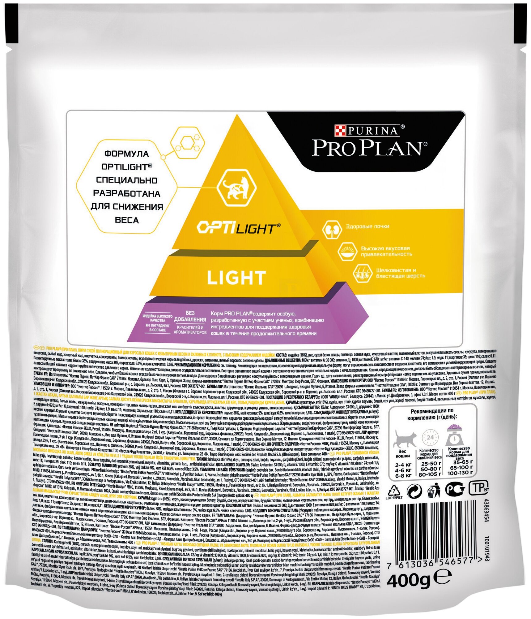Корм для кошек Pro Plan Light для кошек низкокалорийный Индейка, 400 гр.