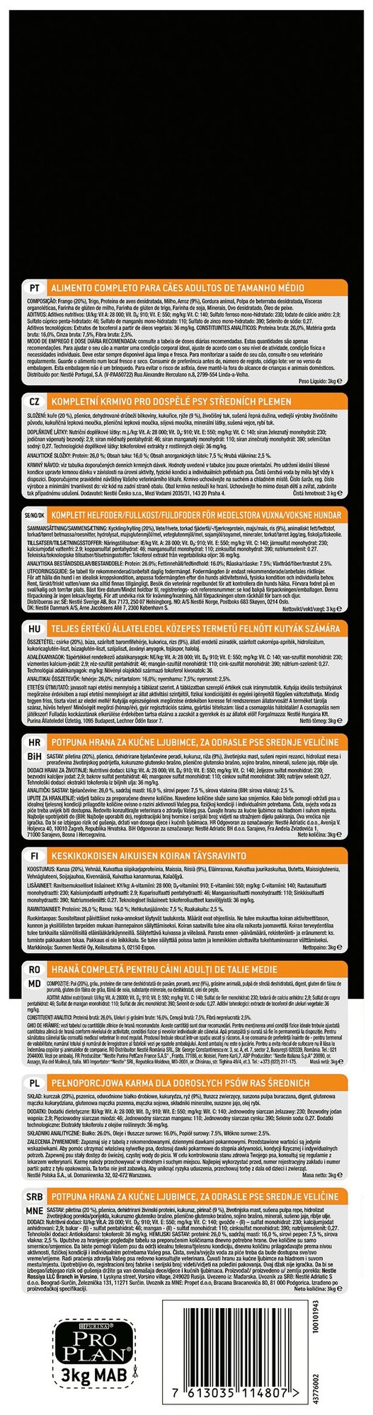 Корм для собак Сухой корм Pro Plan® для взрослых собак средних пород, с высоким содержанием курицы, Пакет, 3 кг