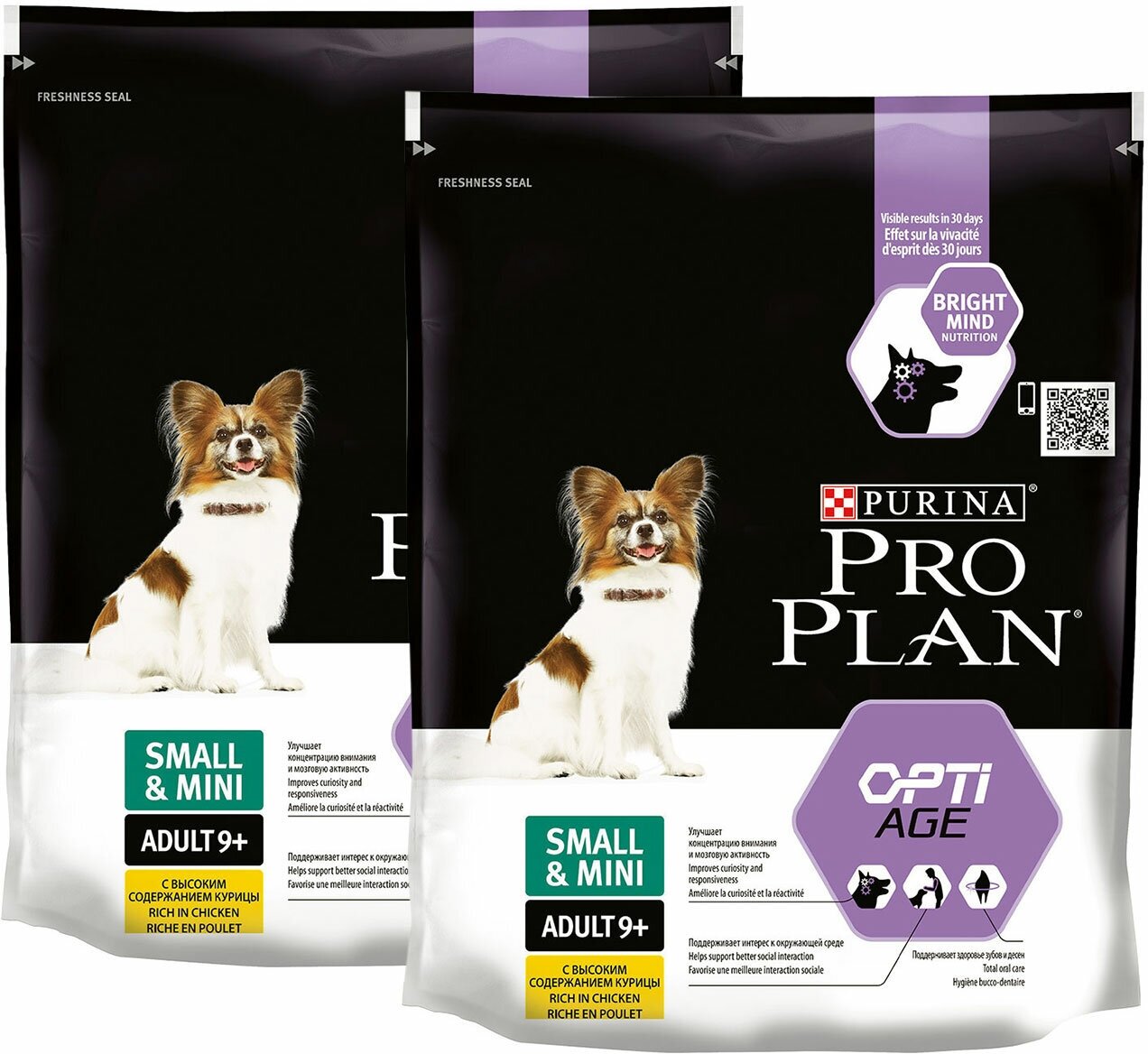 Корм для собак PRO PLAN ADULT 9+ OPTIAGE SMALL & MINI для пожилых собак маленьких пород старше 9 лет с курицей и рисом (0,7 + 0,7 кг)