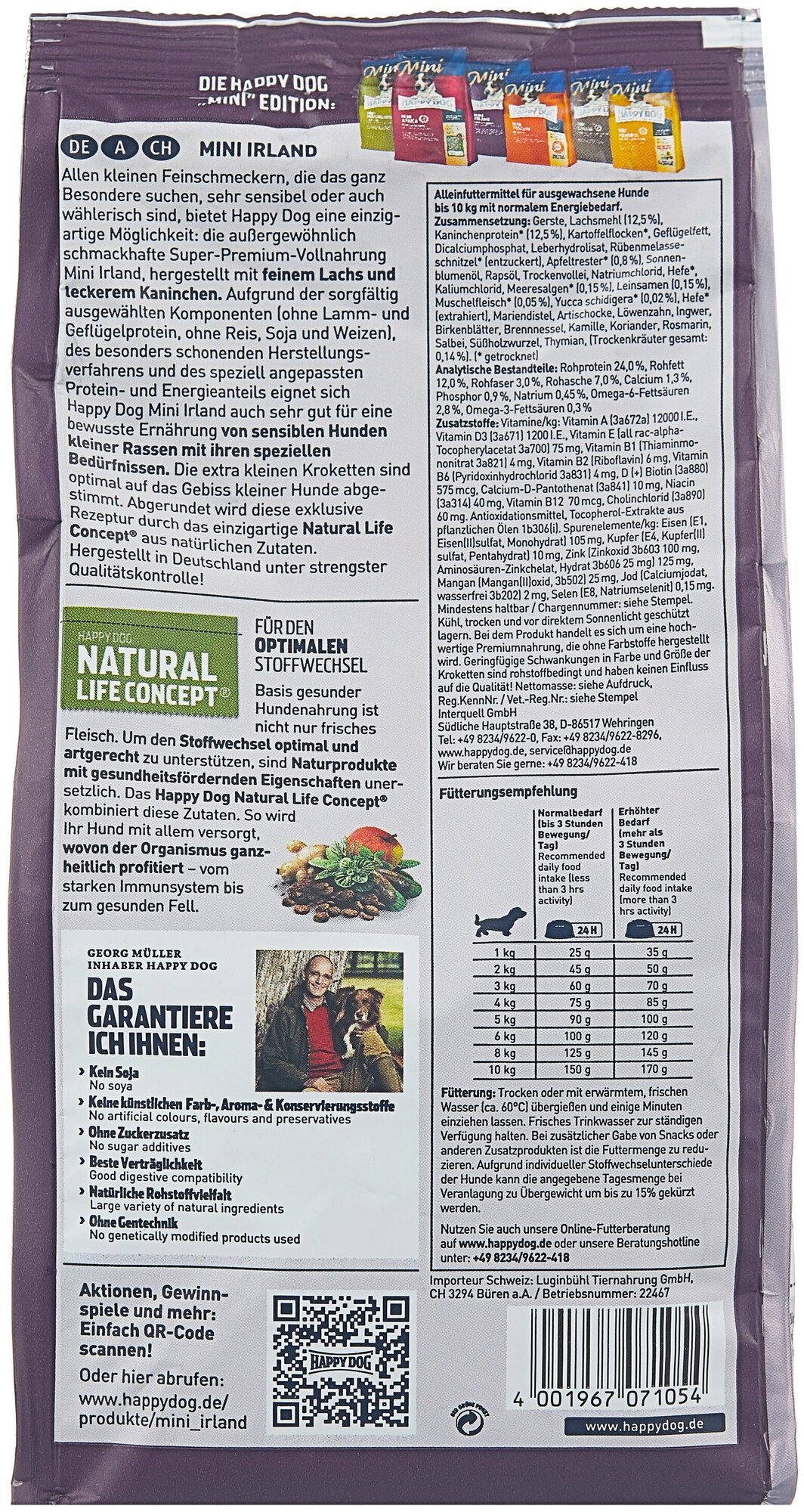 Сухой корм для собак Happy Dog Mini Irland, лосось, кролик 4 кг (для мелких пород)
