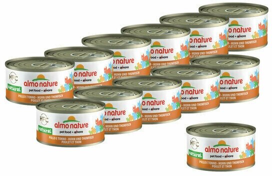 Almo Nature (консервы) консервы для кошек, с курицей и тунцом, 75% мяса, 70 г. (24 шт)