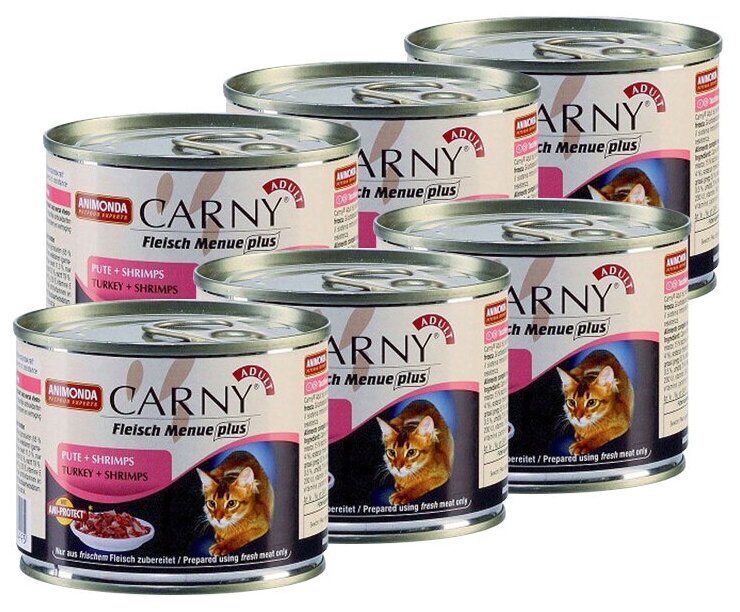 Корм для кошек Корм для кошек ANIMONDA Carny Adult индейка, креветки конс. 200г (упаковка - 6 шт)