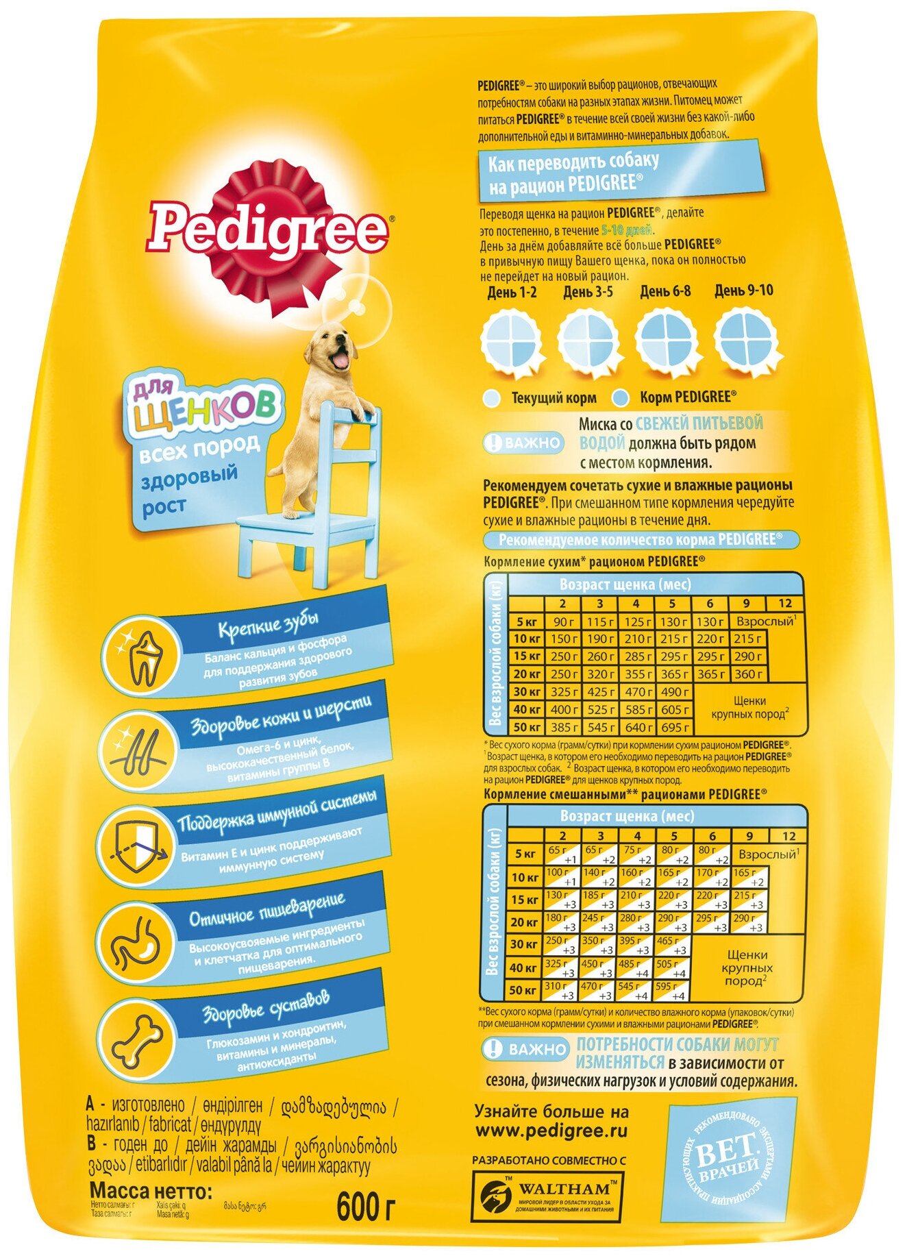 Pedigree корм для щенков всех пород, курица 600 гр