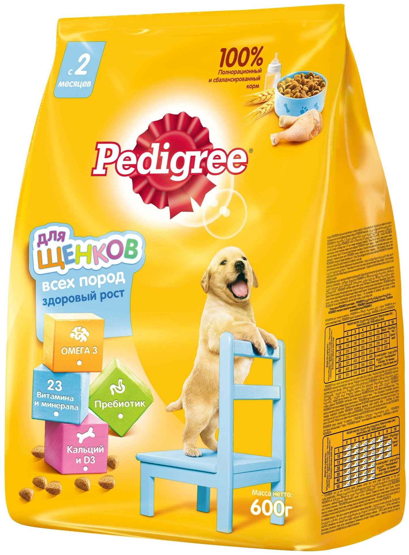 Корм сухой Pedigree полнорационный для щенков всех пород с 2 месяцев, с курицей, 600г