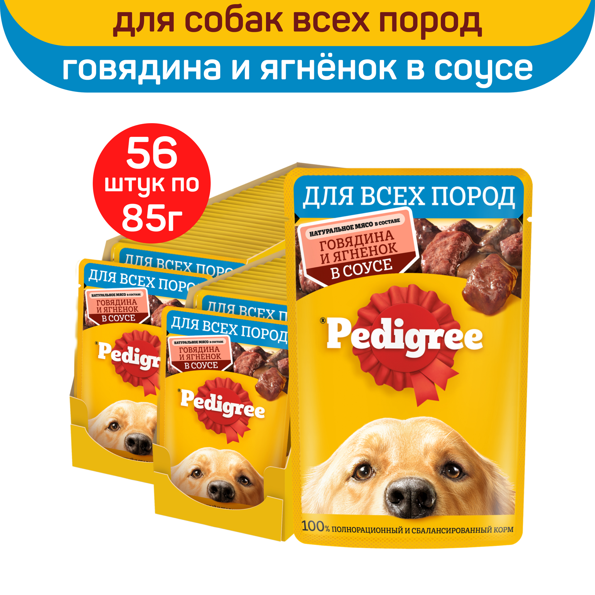 Корм для собак Влажный корм Pedigree, для взрослых собак всех пород, с говядиной и ягненком в соусе, 85г х 56шт